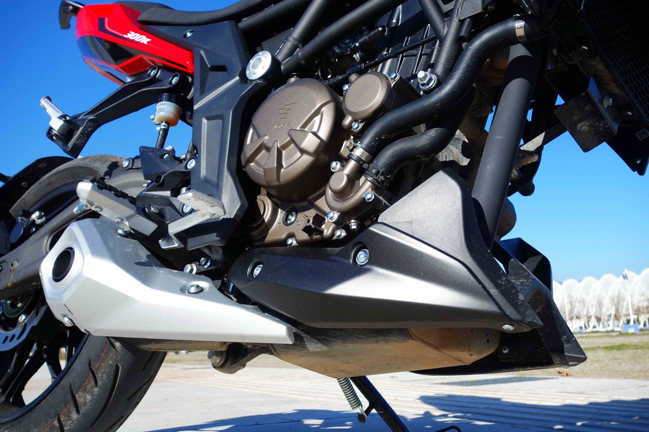 Το 300R είναι μια γυμνή μοτοσικλέτα δρόμου με sport καταβολές, που κινείται από έναν υγρόψυκτο μονοκύλινδρο κινητήρα με τετραβάλβιδη κεφαλή και 2 ΕΕΚ, απόδοσης 29Hp/8.500rpm και 25Nm/7.000rpm. Επιθετικό σε όψη και εντυπωσιακό σε περιφερειακά (πιρούνι USD, δύο δισκόφρενα μπροστά, δικάναλο Bosch ABS, τελικό εξάτμισης κάτω από το ψαλίδι, μοχλικό σύστημα πίσω, ασύμμετρο ψαλίδι), σε κερδίζει ακόμα περισσότερο με την ομοιογένειά του.