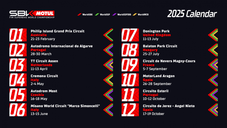Το ημερολόγιο των Αγώνων του WorldSBK 2025