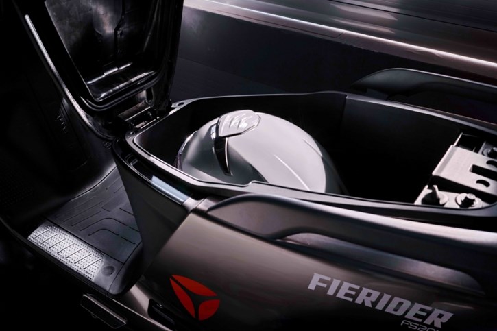 Το χαμηλό κέντρο βάρους του Fierider, χάρη στις μπαταρίες που είναι τοποθετημένες κάτω από το επίπεδο δάπεδο, βελτιώνει το χειρισμό και τη σταθερότητα του συνόλου, καθιστώντας το μοντέλο πολύ εύκολο στην οδήγηση κάτω από κάθε οδηγική συνθήκη. Ένας ευρύχωρος αποθηκευτικός χώρος 31 λίτρων κάτω από τη σέλα μπορεί να φιλοξενήσει ένα κράνος full face και άλλα μικροαντικείμενα, ενώ το επίπεδο δάπεδο εκτοξεύει στα ύψη τη χρηστικότητα, επιτρέποντας επιπλέον μεταφορά μεγάλων αντικειμένων.