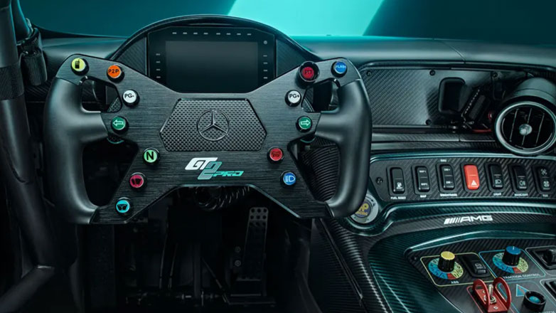 Αναπτυγμένο για χρήση στον χώρο των ηλεκτρονικών αθλημάτων (e-sports), το τιμόνι της Cube Controls έχει βελτιστοποιηθεί για το GT2, ενσωματώνοντας το κουμπί «push-to-pass».