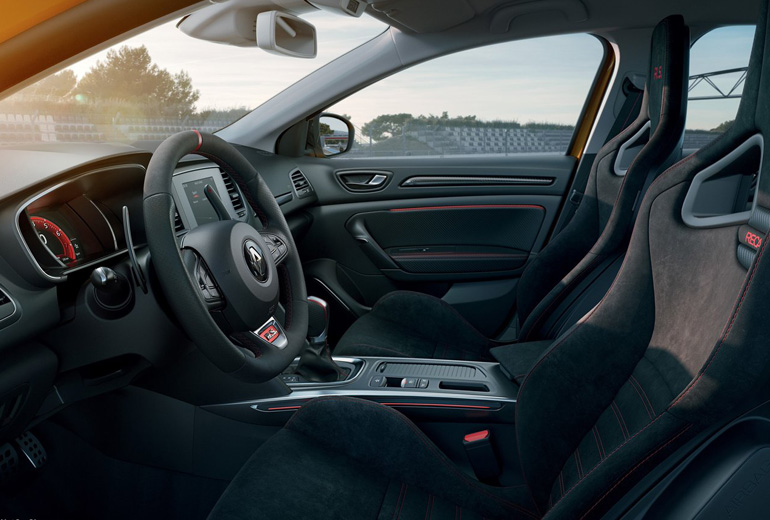 Το βάρος του Megane R.S. Trophy έχει περιοριστεί στα 1.419 κιλά, με τη Renault Sport να το εφοδιάζει με σπορ ανάρτηση, μπλοκέ διαφορικό τύπου Torsen, σύστημα τετραδιεύθυνσης 4Control, ζάντες «fuji» 19 ιντσών και δίσκους διαστάσεων 355 χλστ. Τα ελαστικά Potenza 007 έχουν σχεδιαστεί αποκλειστικά για το αυτοκίνητο από την Bridgestone, ενώ τα μπάκετ καθίσματα της Recaro φέρουν επένδυση alcantara και είναι πιο χαμηλά κατά 20 χλστ. σε σχέση με αυτά του απλού R.S.