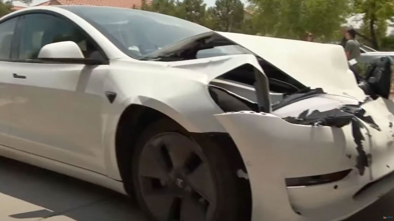 Τα πλάνα από την κάμερα του Model 3 το δείχνουν να πλησιάζει αργά σε μια διασταύρωση στο Mount Charleston βορειοδυτικά του Λας Βέγκας, όταν ένα Jeep Wrangler Rubicon εμφανίζεται ξαφνικά στα αριστερά, ερχόμενο πολύ γρήγορα. Το Jeep προσπαθεί να στρίψει αλλά πηγαίνει πολύ γρήγορα και υποστρέφει, πέφτοντας τελικά κατευθείαν πάνω στο αθώο Model 3.