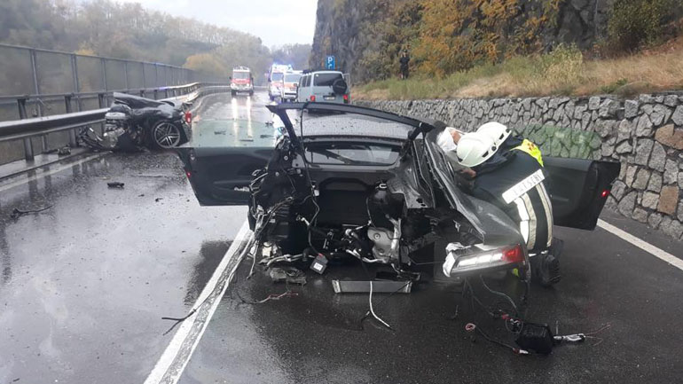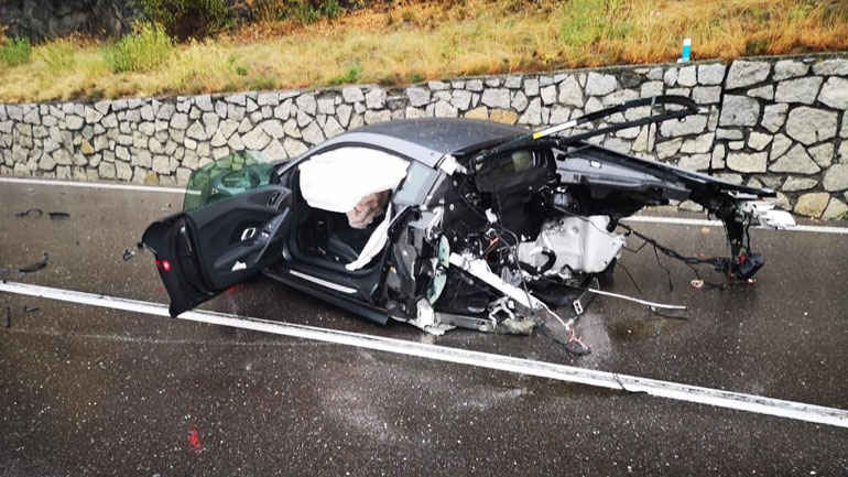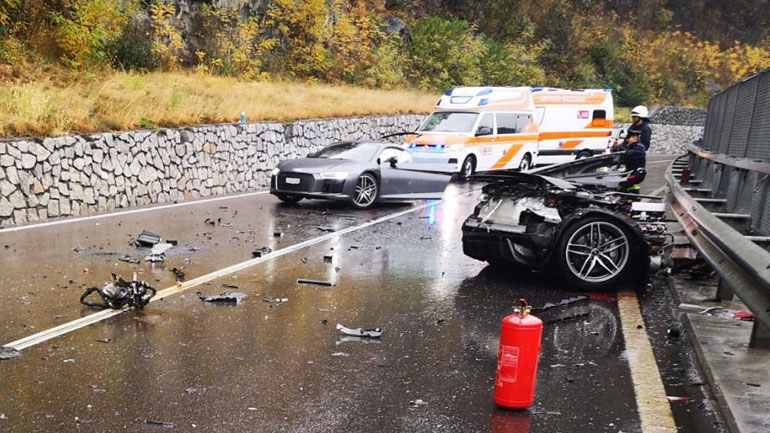 Η πρόσκρουση μεταξύ του Audi R8 και του VW Transporter ήταν τόσο σφοδρή, που το πρώτο όχημα κόπηκε στη μέση. Τα δύο τμήματα του αμαξώματος εκσφενδονίστηκαν αριστερά και δεξιά του δρόμου, με τους οδηγούς των διερχόμενων οχημάτων να σοκάρονται από το θέαμα.