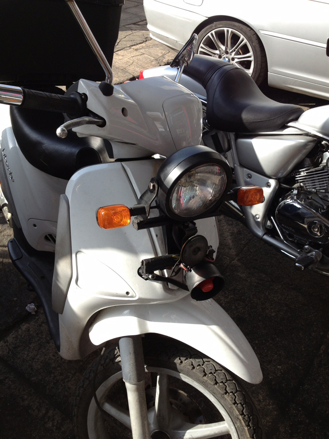 Όπως θα δείτε από φωτογραφίες που μας έστειλε αναγνώστης του zougla.gr, στο συγκεκριμένο δίκυκλο υπάρχει ένα σημαντικό… πρόβλημα που αφορά τα φώτα πορείας. Για παράδειγμα, όταν το μηχανάκι κινείται βράδυ με αναμμένα τα φώτα και ο οδηγός στρίβει το τιμόνι, τα φώτα δείχνουν αλλού για… αλλού καθώς δεν γυρίζουν!