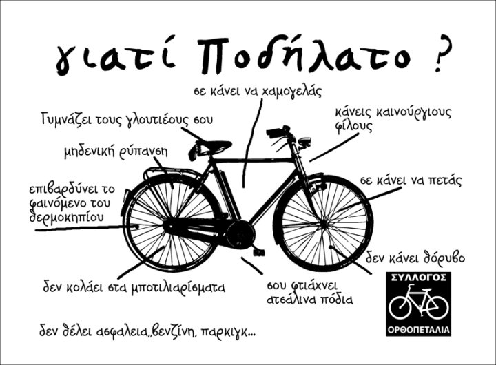 Σύμφωνα με εκτιμήσεις της τρόικας αυτή τη στιγμή στην Ελλάδα κυκλοφορούν περισσότερα από 1 εκατ. ποδήλατα για τα οποία οι κάτοχοί τους δεν πληρώνουν κανέναν απολύτως φόρο. [και καλά κάνουμε] Οι εκπρόσωποι των δανειστών κάνουν λόγο στην επιστολή τους για «πρωτοφανή φορολογική αδικία και ανισότητα εις βάρος όσων διαθέτουν άλλου είδους μεταφορικά μέσα» και απαιτούν από την ελληνική κυβέρνηση να επιβάλει τέλη κυκλοφορίας και στους ποδηλάτες και μάλιστα άμεσα. Ως παράδειγμα προς μίμηση φέρνουν ένα άλλο κράτος-μέλος της Ε.Ε., την Ολλανδία, όπου έχει επιβάλει ανάλογο φόρο από το 1982.