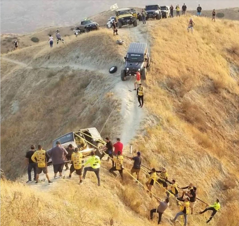 Οι δοκιμασίες ωστόσο ήταν σκληρές και ιδιαίτερα επικίνδυνες, με αποτέλεσμα ένας από τους οδηγούς να βρεθεί σε πολύ δύσκολη θέση. Κατά τη διάρκεια περάσματος από την κορυφογραμμή του βουνού, ο κάτοχος του Wrangler έκανε ένα σοβαρό λάθος και το όχημα βρέθηκε στο χείλος του γκρεμού.