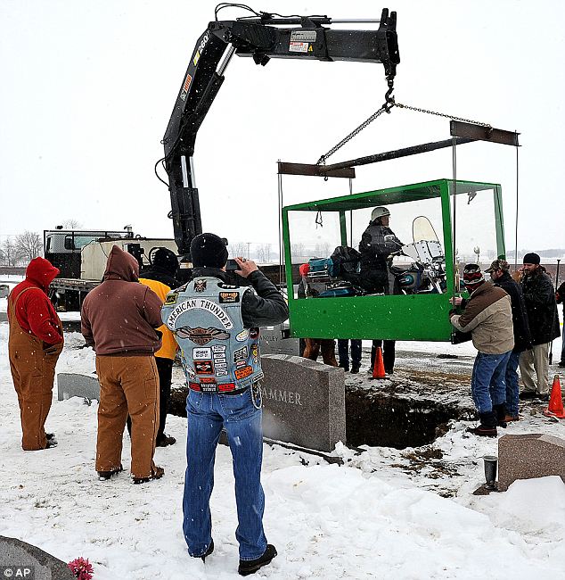 Ούτε ο θάνατος δεν μπόρεσε να χωρίσει τον Billy Stanley από την αγαπημένη του Harley Davidson καθώς η επιθυμία του να τον θάψουν με αυτή, έγινε πραγματικότητα. Όπως θα δείτε από τις σχετικές φωτογραφίες και το video, ο φανατικός Harle-ας «ταξίδεψε» στην τελευταία κατοικία συνοδεία φίλων του (φανατικών με τις Harley) και φάφτηκε μέσα σε ένα ειδικό πλεξιγκλάς το οποίο είχε φτιάξει ο ίδιος πριν πεθάνει.