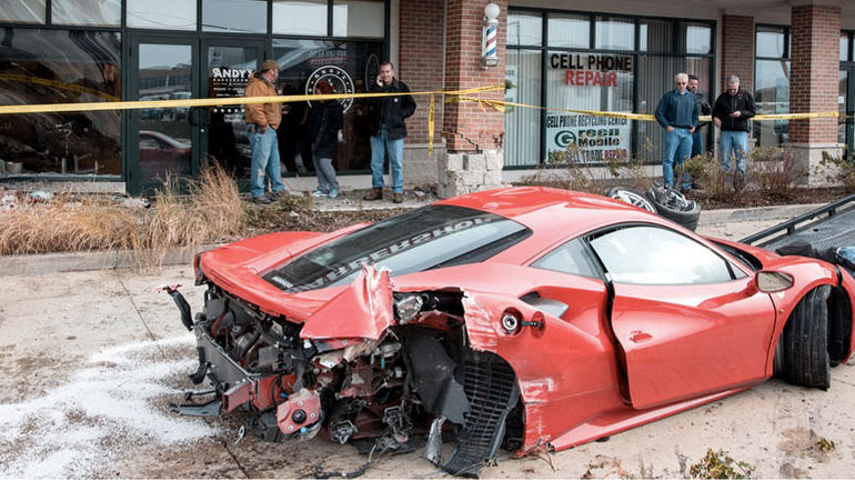 Σε κάποιο σημείο όμως, χτύπησε σε ένα Volvo, έχασε τον έλεγχο της Ferrari, ανέβηκε στο πεζοδρόμιο και κατέληξε στον τοίχο ενός κομμωτηρίου. Ως εκ θαύματος δεν τραυματίστηκε κανείς, παρότι τη συγκεκριμένη ώρα τα καταστήματα ήταν ανοικτά. Ο πιτσιρικάς βγήκε σοκαρισμένος από το διαλυμένο supercar και συνελήφθη από την αστυνομία.
