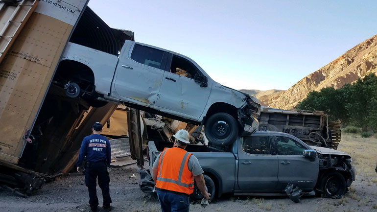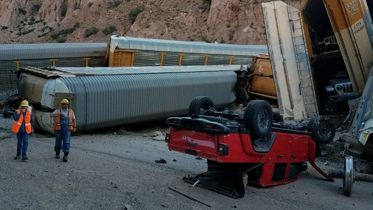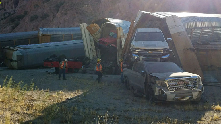 Εμπορική αμαξοστοιχία που μετέφερε μοντέλα της Jeep, της Chevrolet και της GMC εκτροχιάστηκε στην περιοχή Lincoln County της Νεβάδα, με αποτέλεσμα όλα τα αυτοκίνητα να διαλυθούν.