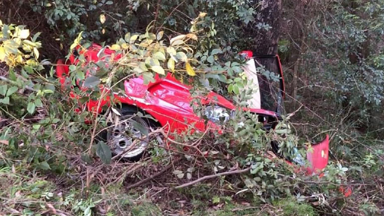 Η βόλτα δεν πήγε καθόλου όμως. Πιθανότατα, λόγω απειρίας, ο οδηγός έχασε τον έλεγχο του ιταλικού αυτοκινήτου, αυτό βγήκε εκτός δρόμου και έπεσε σε ένα χαντάκι ύψους πέντε μέτρων. Ευτυχώς, οι δύο επιβάτες βγήκαν από το όχημα έχοντας τραυματιστεί ελαφρά.