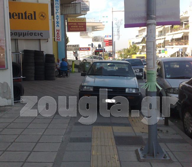 Αυτοκίνητο παρκαρισμένο πάνω στον ειδικό δρόμο για τυφλούς…
