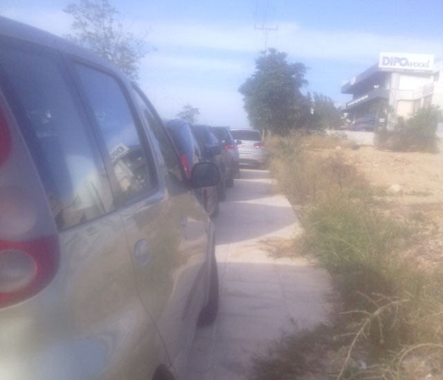 Όπως μπορείτε να δείτε, ο πεζόδρομος στο συγκεκριμένο σημείο έχει μετατραπεί σε τεράστιο χώρο στάθμευσης…