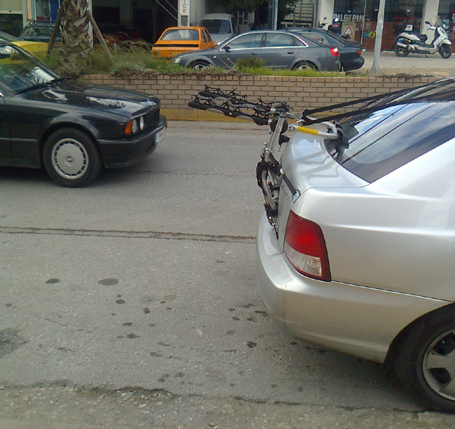 Ολοένα και πιο συχνά τα τελευταία χρόνια βλέπουμε αυτοκίνητα να κυκλοφορούν και να εφοδιάζονται στο πίσω μέρος με σχάρες ποδηλάτων χωρίς όμως να μεταφέρουν ποδήλατα. Για όσους δεν το γνωρίζουν να αναφέρουμε πως το πρόστιμο σε αυτή την περίπτωση είναι 80 ευρώ αλλά το πιο σημαντικό από όλα είναι το πόσο επικίνδυνο μπορεί να γίνει…