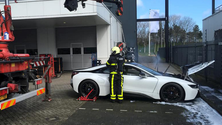 Ένα i8 λευκού χρώματος έβγαζε καπνούς από τον χώρο όπου βρίσκεται το μηχανικό σύνολο και οι εργαζόμενοι στην αντιπροσωπεία φοβήθηκαν ότι θα προκληθεί πυρκαγιά. Οι πυροσβέστες έφθασαν άμεσα στο σημείο και έριξαν αφρό στο αυτοκίνητο.