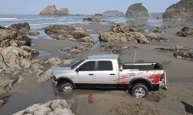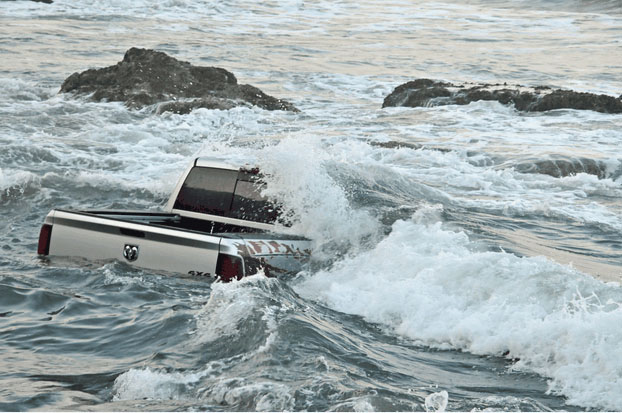 Όπως μπορείτε να δείτε και στις σχετικές εικόνες, για να έρθει το επιθυμητό αποτέλεσμα έπρεπε να βάλει σχεδόν ολόκληρο το Dodge RAM μέσα στη θάλασσα! Η φωτογράφιση έγινε στην περιοχή Manstoun Beach στην Καλιφόρνια. Αν και οι περισσότεροι θα πιστεύουν ότι το όχημα είναι πλέον για… πέταμα, εκπρόσωποι της Chrysler Group έκαναν γνωστό ότι ο κινητήρας λειτουργούσε κανονικά χωρίς πρόβλημα, ενώ δεν υπήρξε καμία διαρροή καυσίμου στο περιβάλλον.