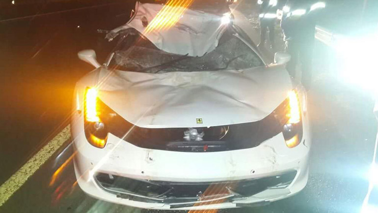 Η σύγκρουση ήταν τόσο σφοδρή που η Ferrari διαλύθηκε κυριολεκτικά. Οι επιβάτες, ευτυχώς, τραυματίστηκαν ελαφρά, σε αντίθεση με την άτυχη αγελάδα.