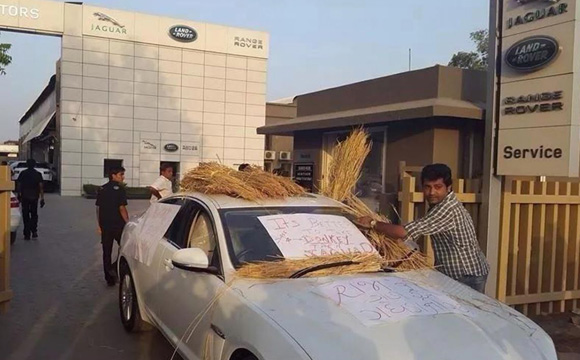 Τον πλέον πρωτότυπο τρόπο για να διαμαρτυρηθεί, σκέφτηκε ο ιδιοκτήτης μιας Jaguar XF στην Ινδία, ρυμουλκώντας το αυτοκίνητο με γαϊδουράκια.