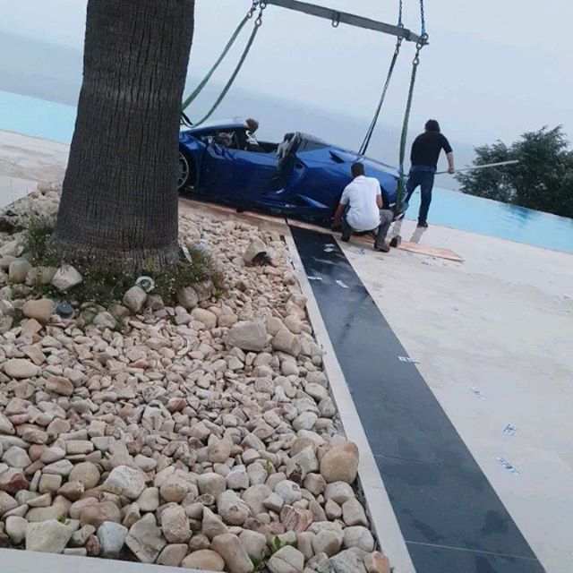 Στην προσπάθεια να ξεπαρκάρει το supercar, μπέρδεψε τις ταχύτητες, οι ψηλοτάκουνες γόβες κόλλησαν στο γκάζι και το αυτοκίνητο κατέληξε στην πισίνα της βίλας στην οποία διέμενε.