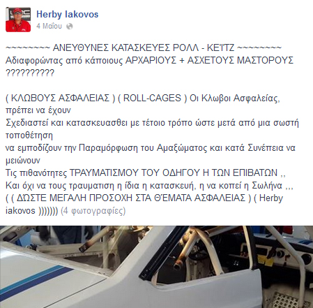 Διαβάστε τι έγραψε ένας από τους κορυφαίους κατασκευαστές roll cage στην Ελλάδα…