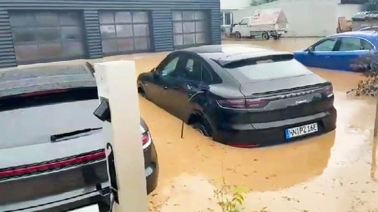 Ακόμα και οι αντιπροσωπείες αυτοκινήτων καταστράφηκαν. Στο Heilbronn, δεκάδες μοντέλα της Porsche υπέστησαν πολύ μεγάλες ζημιές. Το νερό στο εξωτερικό πάρκινγκ της έκθεσης έφτασε μέχρι τις πόρτες των ολοκαίνουριων αυτοκινήτων.