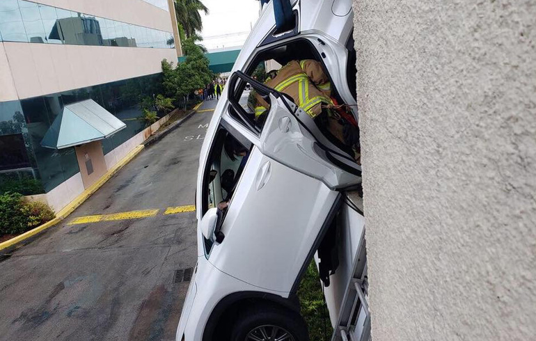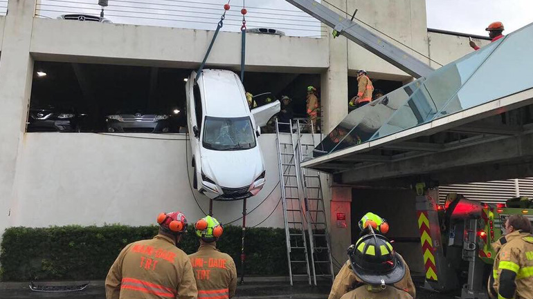 Όπως ανέφερε ο επικεφαλής του πυροσβεστικού σώματος στο Μαϊάμι, Danny Cardeso, η κυρία σώθηκε από καθαρή τύχη. Το πάτωμα του οχήματος σφήνωσε με έναν περίεργο τρόπο στον τοίχο, ο ουρανός βρήκε στην πάνω κολόνα και έτσι γλύτωσε την πτώση.