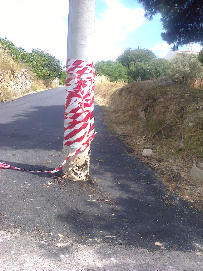 Το αστείο είναι πως λόγω της προεκλογικής περιόδου έχουν ρίξει άσφαλτο αλλά όπως φάνηκε κανείς δεν ενδιαφέρθηκε για το αν μία κολώνα βρίσκεται στη μέση του δρόμου…