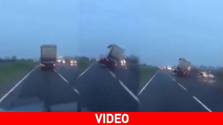 Τις δραματικές στιγμές που βίωσε οδηγός φορτηγού σε αυτοκινητόδρομο της κομητείας Ντόρσετ στο νότιο τμήμα της Μ. Βρετανίας κατέγραψε ερασιτεχνική κάμερα.