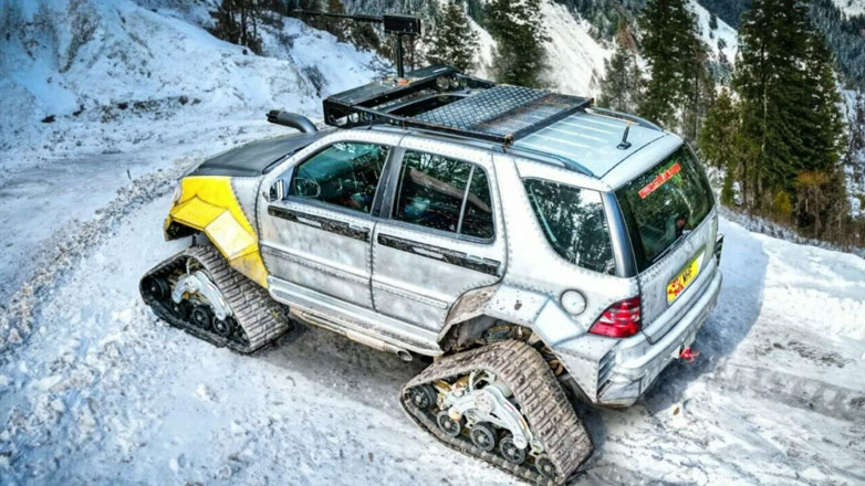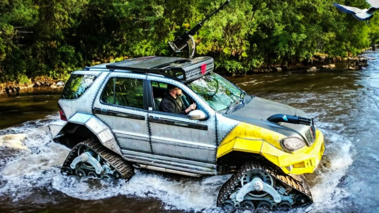 Όπως φαίνεται και στις φωτογραφίες, το δημιούργημα αυτό βασίζεται σε μια Mercedes-Benz ML500 του 2002 και αντί για τροχούς, πατάει σε ερπύστριες, οι οποίες συμπληρώνονται από προσαρμοσμένες επεκτάσεις φτερών που ενσωματώνονται άψογα με τους προσαρμοσμένους χαλύβδινους προφυλακτήρες. Μάλιστα το σύνολο έχει βαφτεί και με τέτοιο τρόπο ώστε να φαίνεται σα να είναι φτιαγμένο από μεταλλικά πάνελ για ακόμα πιο Apocalypse εμφάνιση.