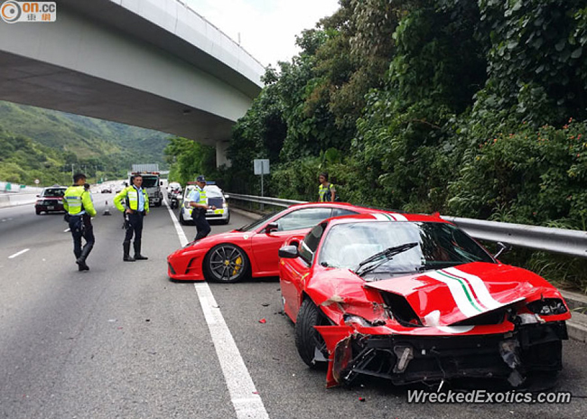 Όπως θα δείτε από τις παρακάτω φωτογραφίες δύο κόκκινες Ferrari έπαθαν σοβαρές υλικές ζημιές όταν και σύμφωνα με πηγές, ο οδηγός της 360 έχασε τον έλεγχο και έπεσε πάνω στην F430 Scuderia.