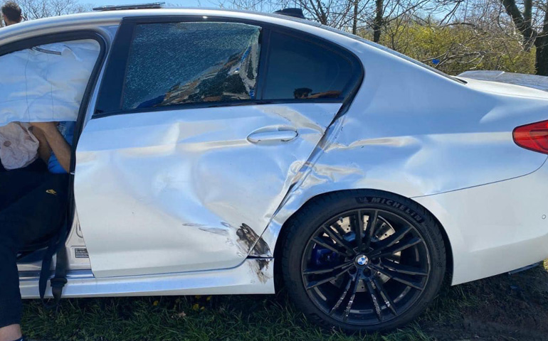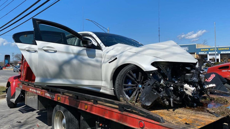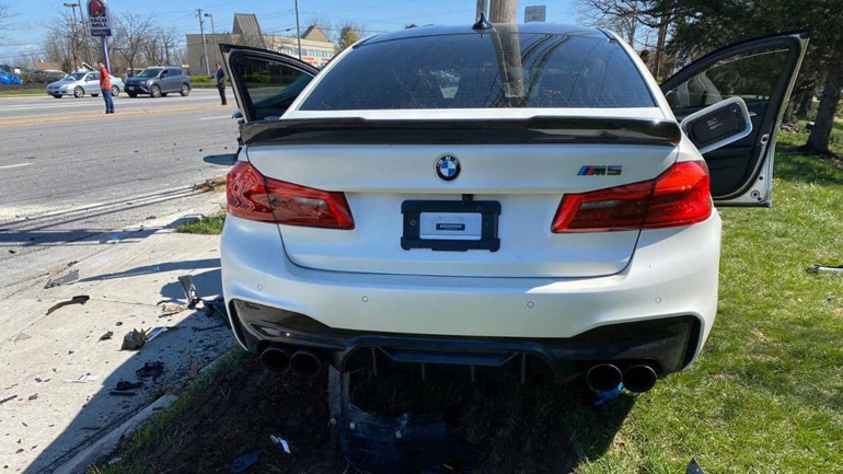Έχοντας διανύσει μόλις 11 χιλιόμετρα και με το λευκό χρώμα της M5 των 600 ίππων να λάμπει, ο κάτοχος και οδηγός έχασε τον έλεγχο του οχήματος – πιθανότατα έπειτα από επαφή με άλλο όχημα – αυτό περιστράφηκε, χτύπησε σε ένα κράσπεδο και «καρφώθηκε» με δύναμη σε έναν στύλο ηλεκτροδότησης.