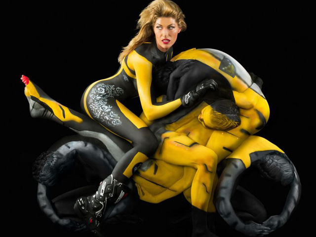 Η καλλιτέχνης Trina Merry ειδικεύεται στο body painting και κατά καιρούς έχει δημιουργήσει εντυπωσιακά έργα, με ανθρώπινα σώματα να αναπαριστούν μοτοσικλέτες και αυτοκίνητα.