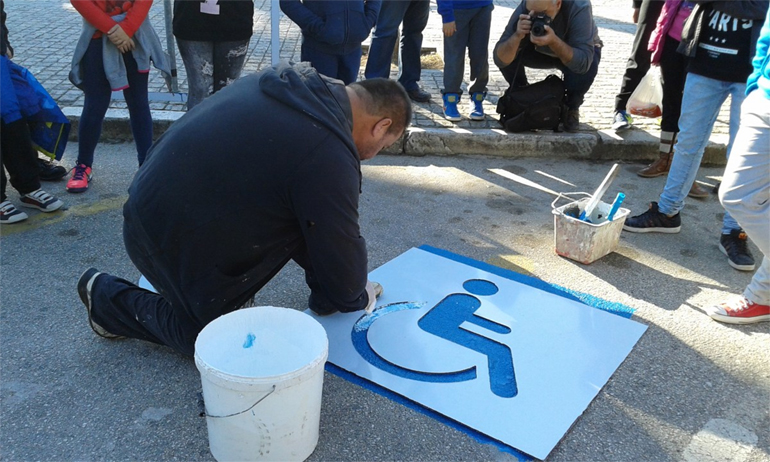 - Βάψιμο μπλε με κίτρινη περίμετρο αναπηρικών θέσεων σε Λύκειο – Λιμάνι
