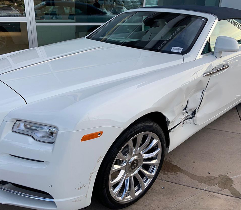 Ο πελάτης και οδηγός του αμερικανικού muscle car μπέρδεψε το γκάζι με το φρένο, το όχημα επιτάχυνε με δύναμη και προσέκρουσε πάνω σε μία Rolls-Royce Dawn, η οποία ήταν παρκαρισμένη στον ανοιχτό χώρο στάθμευσης της αντιπροσωπείας DDW Partners.