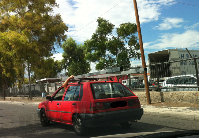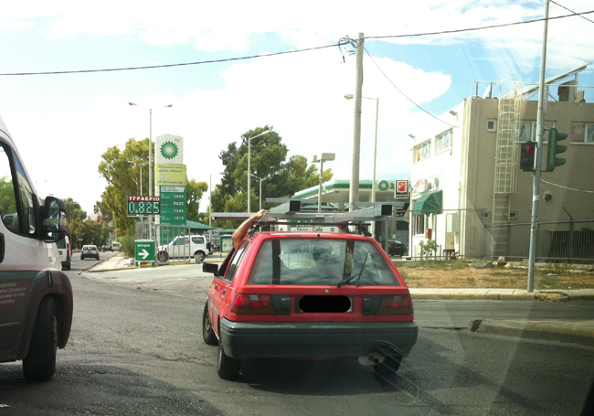 Φωτογραφίες από την περιοχή του Αγίου Ιωάννη Ρέντη έστειλε o αναγνώστης του zougla.gr, Αλέξανδρος Γ. Όπως μπορείτε να δείτε, οδηγός και συνοδηγός κρατούν το αντικείμενο που έχουν φορτώσει στην σχάρα οροφής του αυτοκινήτου, για να μην τους… φύγει.