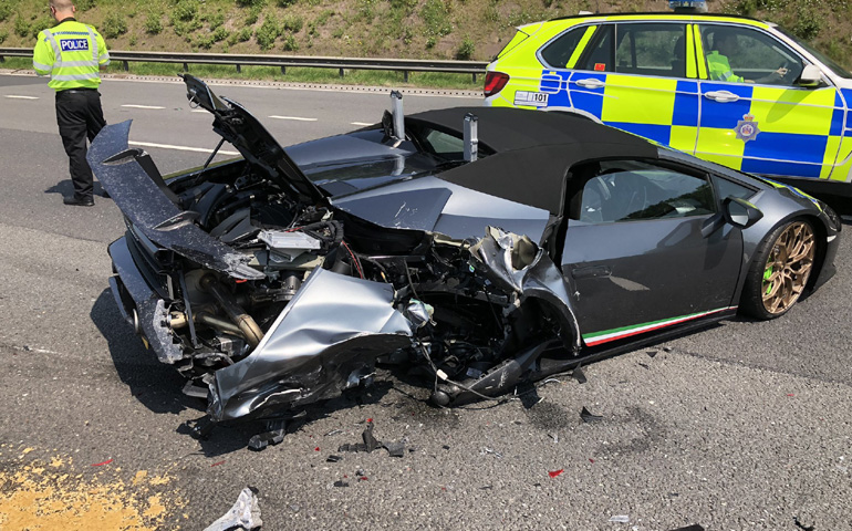 20 λεπτά αργότερα κι ενώ κινούνταν στον αυτοκινητόδρομο Μ1 του δυτικού Yorkshire, η Huracán Performante Spyder ακινητοποιήθηκε ξαφνικά στη μέση του δρόμου λόγω βλάβης. Ο οδηγός δεν πρόλαβε να κάνει το παραμικρό, ούτε αυτός του Van που ακολουθούσε από πίσω.