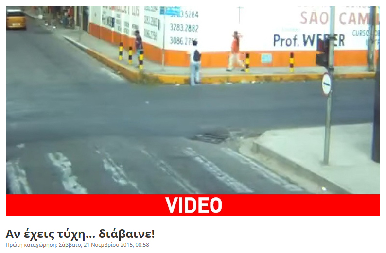 «Αν έχεις τύχη… διάβαινε», αναφέρει η λαϊκή ρήση και στην περίπτωση του μεθυσμένου άνδρα που κινείται σε πεζοδρόμιο πόλης της Βραζιλίας, τα πράγματα εξελίχθηκαν μ’ έναν εντελώς απροσδόκητο τρόπο, χωρίς ο ίδιος να πάθει το παραμικρό!