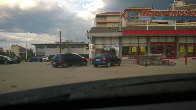 «Χώρος στάθμευσης αναπήρων. Η συμπεριφορά στην οδήγηση είναι δείγμα πολιτισμού, που εδώ δυστυχώς λείπει! Όχι μόνον στάθμευσε σε θέση αναπήρων, αλλά κατέλαβε δύο θέσεις γιατί προφανώς είναι πολύ… ανάπηρος!»
