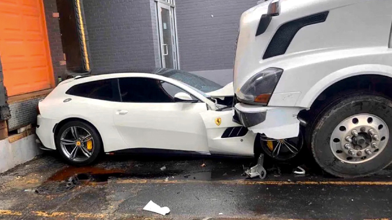 Το υπέροχο ιταλικό μοντέλο υπέστη μεγάλες υλικές ζημιές, με τα μηχανικά μέρη του εμπρός τμήματος όπως η ανάρτηση, να συνθλίβονται. Όσο για τον οδηγό του φορτηγού, συνελήφθη άμεσα.