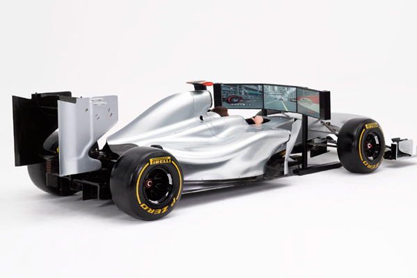 Ο εξομοιωτής είναι ο ίδιος που χρησιμοποιούν οι οδηγοί της F1. Πρόκειται για ομοίωμα μονοθεσίου κατασκευασμένο από ανθρακονήματα, με πραγματικά ελαστικά της Pirelli και φρένα Brembo. Μπροστά είναι τοποθετημένες τρεις οθόνες TFT 23 ιντσών, έχει σύστημα ήχου και ένα ισχυρό υπολογιστή Intel Core i7 με μνήμη 16GB RAM.