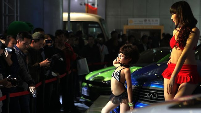 Εικόνες που πραγματικά σοκάρουν, έρχονται από την Κίνα και σε αυτές εμφανίζονται ανήλικα κορίτσια να διαφημίζουν αυτοκίνητα, φορώντας μπικίνι. Το απίστευτο αυτό γεγονός συνέβη κατά τη διάρκεια μίας έκθεσης.