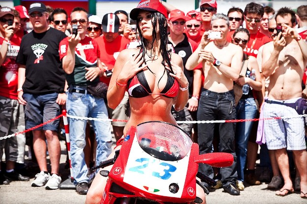 Αγώνες με μηχανές, event, συναυλίες με συγκροτήματα της ροκ ήταν ορισμένα από τα highlights του WDW 2012. Ωστόσο, αυτό που και φέτος έκλεψε τις εντυπώσεις, κάνοντας ακόμα και τον Valentino Rossi να παρευρεθεί, ήταν το Ducati wash. Ημίγυμνες κοπέλες, μουσκεμένες από το νερό, πλένουν τις μοτοσικλέτες, με τους θεατές να… τρίβουν τα μάτια τους.