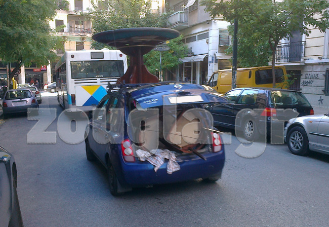 «Βρήκα αυτό το Nissan Micra στην οδό Στουρνάρη στην Ομόνοια να γίνεται φορτηγάκι…. Λόγω της κρίσης πολλοί δεν μπορούν να πληρώσουν μεταφορικές εταιρείες, αναγκάζονται να μεταφέρουν τα έπιπλά τους με το Ι.Χ. δημιουργώντας κινούμενους κινδύνους τόσο για τους ίδιους όσο και τους γύρω… Δηλαδή από πίσω αν τους χτυπήσει ένα αμάξι, οι καρέκλες θα πάνε πιο βαθιά στο Micra προκαλώντας θανάσιμο τραυματισμό..