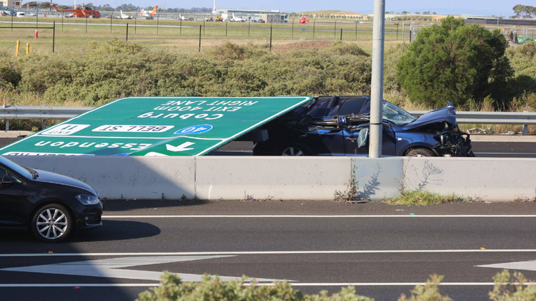 Ένα απίστευτο περιστατικό σημειώθηκε στον αυτοκινητόδρομο Tullamarine, στη Μελβούρνη της Αυστραλίας, όταν μία πινακίδα ξεκόλλησε από τη βάση της και έπεσε στο οδόστρωμα.