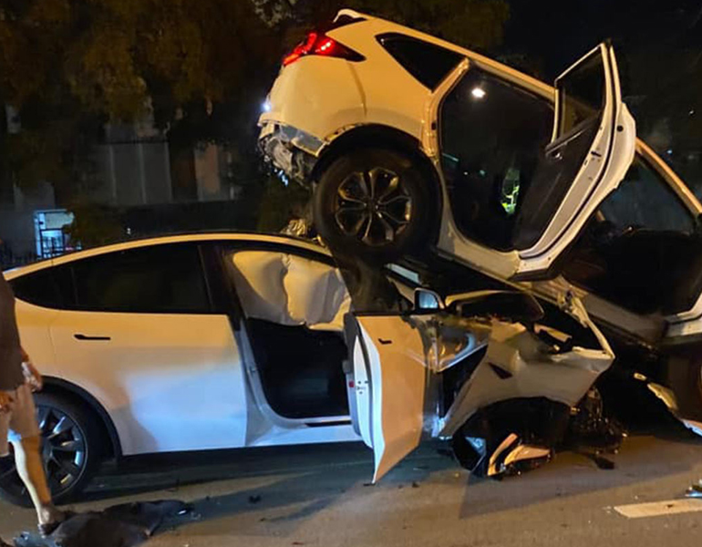 Σφοδρό ατύχημα σημειώθηκε στο Μαϊάμι, όταν ο οδηγός ενός Tesla Model Y έχασε τον έλεγχο του ηλεκτρικού αυτοκινήτου και αυτό προσέκρουσε σε SUV.
