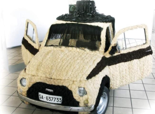 Eμπνευστής και δημιουργός του απίθανου αυτού 500 είναι η 44χρονη στιλίστρια Maria Lucia Mugno. Για να καλύψει όλες τις επιφάνειες χρειάστηκε 120 κιλά τριχών κεφαλής και αρκετά extensions, με το κόστος να αγγίζει τα 80.000 ευρώ!