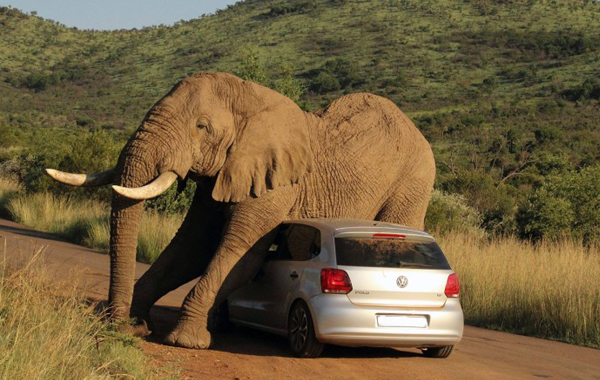 Ο συγκεκριμένος ελέφαντας βρισκόταν σε οίστρο, οπότε μόλις είδε το VW Polo να πλησιάζει πήγε προς το μέρος του για να κατευνάσει τις ορμές του! Ευτυχώς, το τεράστιο θηλαστικό δεν είχε επιθετικές τάσεις και το μόνο που ήθελε ήταν να τριφτεί στο γερμανικό supermini.
