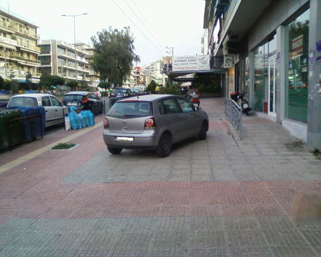 Αφού είναι μεγάλο το πεζοδρόμιο δεν παρκάρω και το αυτοκίνητο, ίσως σκέφτηκε ο ιδιοκτήτης του συγκεκριμένου VW Polo…