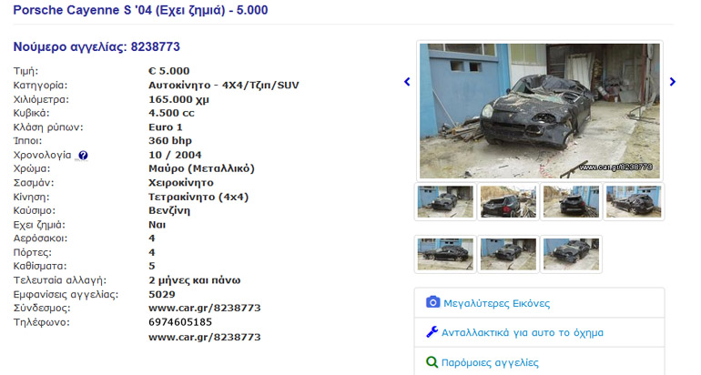 Αυτό όμως που δεν είναι λογικό είναι το ποσό των 5.000 ευρώ για ένα κατεστραμμένο Porsche Cayenne.