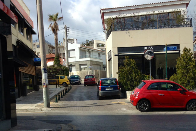 2) το μπλε Fiat Panda στα δεξιά παρκαρισμένο στο δρόμο ήπιας κυκλοφορίας απλά επειδή οριακά χωράνε να περάσουν τα άλλα αμάξια το άφησε εκεί!!