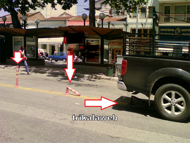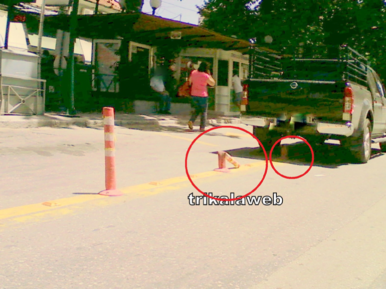 Η μηχανή μπαίνει μπροστά, το πόδι πατάει το γκάζι και το αγροτικό περνάει πάνω από τα κολονάκια. Οι εικόνες είναι από δρόμο στα Τρίκαλα...